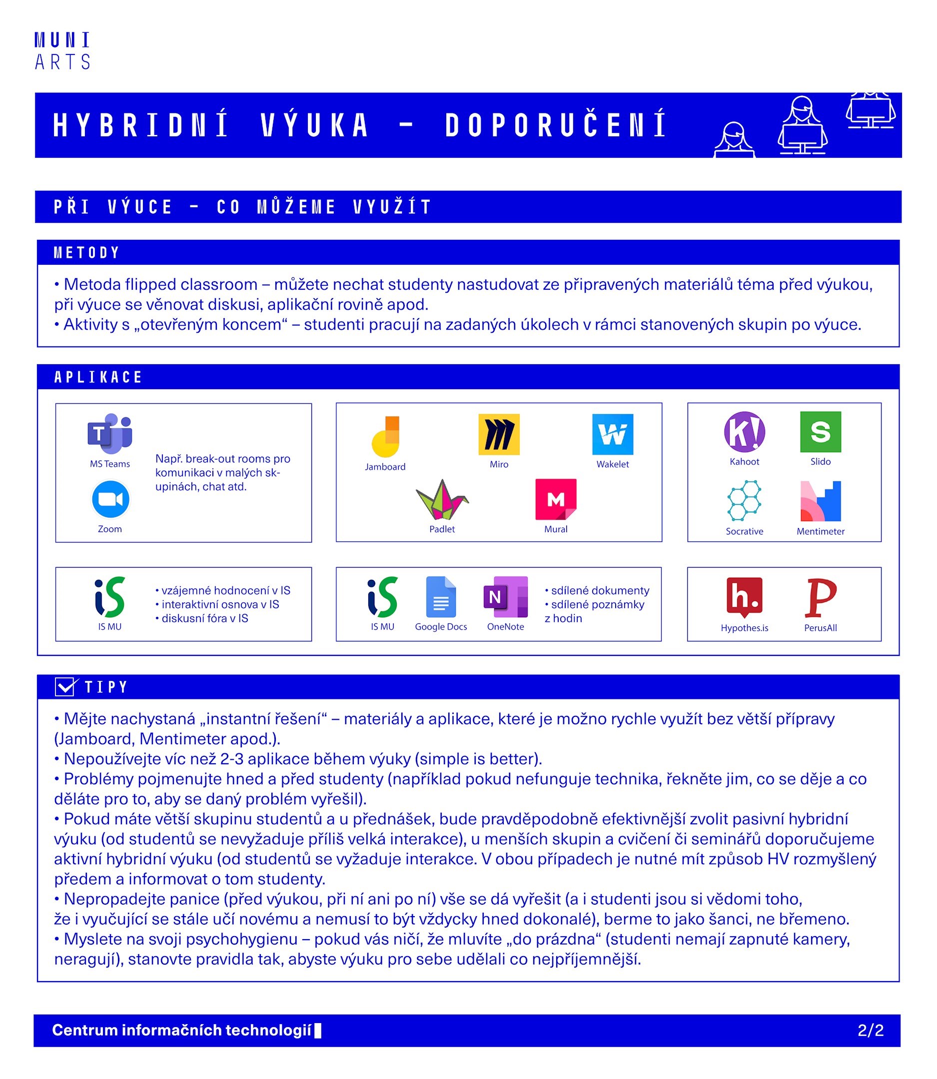 Stránka s doporučeními pro hybridní výuku obsahující tipy, metody a seznam aplikací vhodných k výuce.